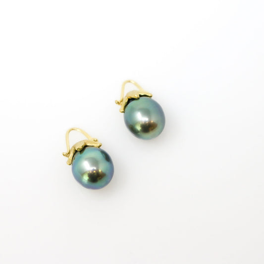 18K Yellow Gold Tahitian Pearl Starfish Earrings