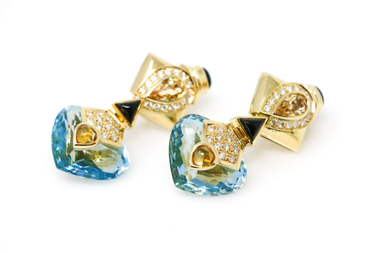 18k Yellow Gold Topaz, Diamond and Onyx Earrings