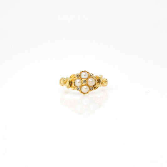 18k Yellow Gold Georgian Pearl and Diamond Ring