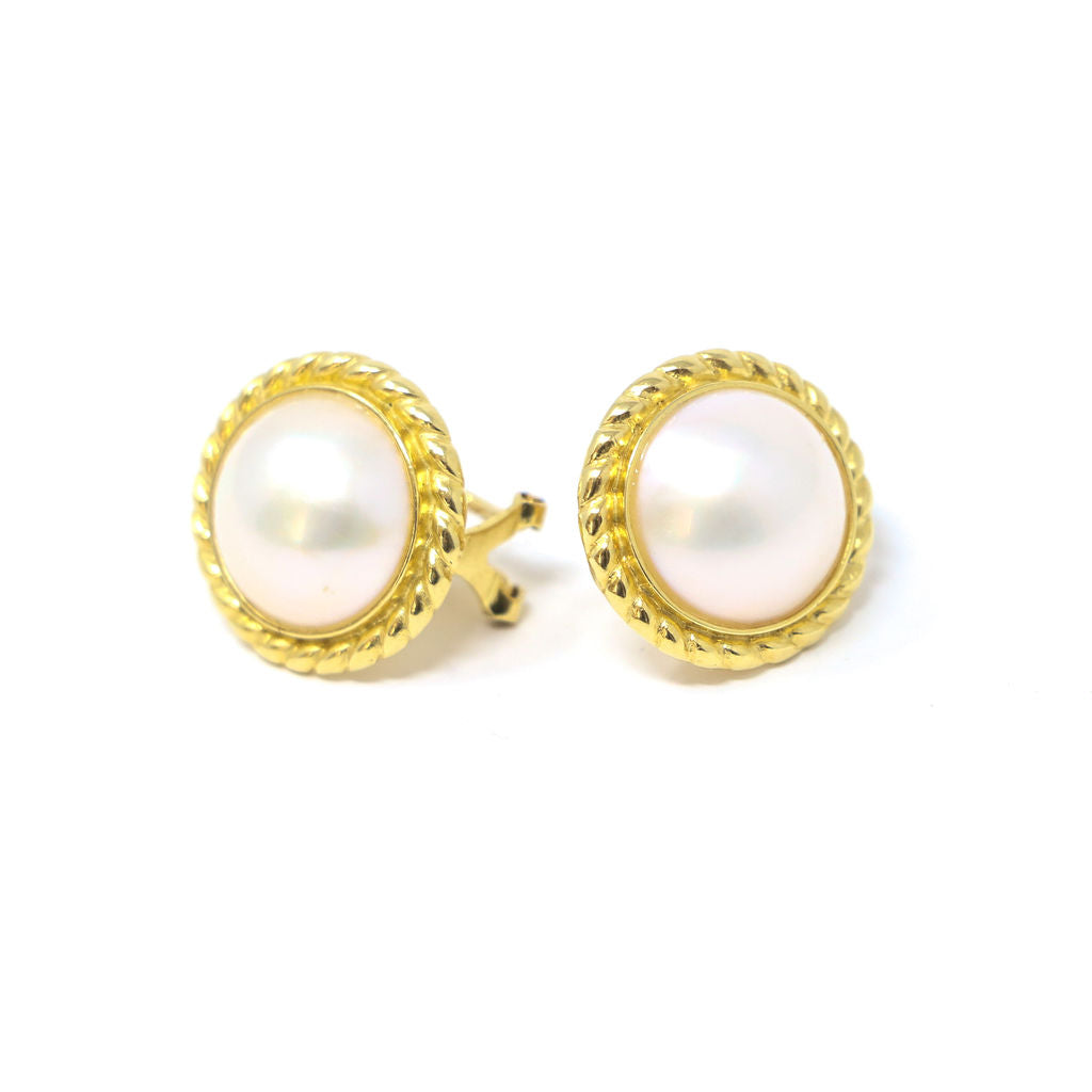 18K Yellow Gold Mabe Pearl Earrings