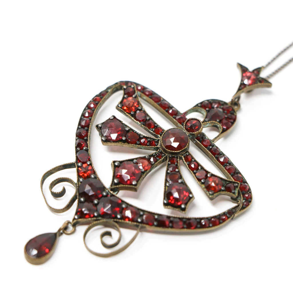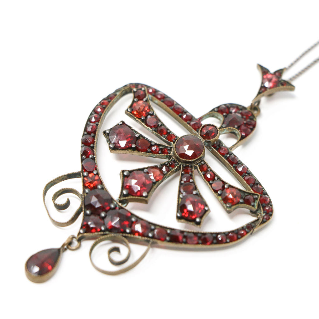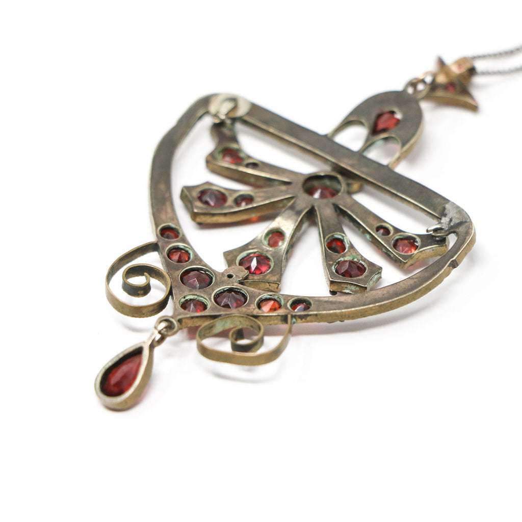 Silver Edwardian Garnet Pendant and Chain